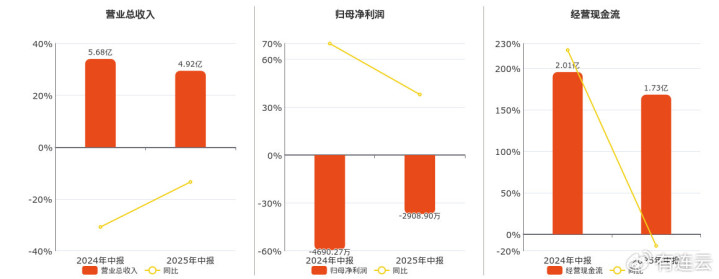 公司营业总收入为4.92亿元,较去年同报告期营业总收入减少7616.90万元,同比较去年同期下降13.42%。归母净利润为-2908.90万元。经营活动现金净流入为1.73亿元,较去年同报告期经营活动现金净流入减少2808.31万元,同比较去年同期下降13.95%。